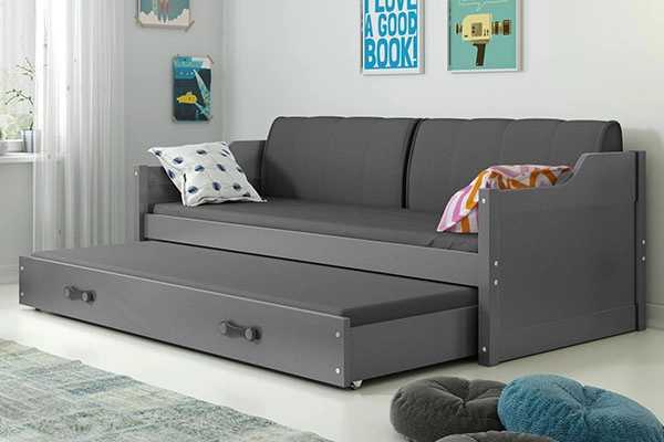 Pat extensibil pentru tineri DAWID 90X200 cu saltea și sertar, grafit
