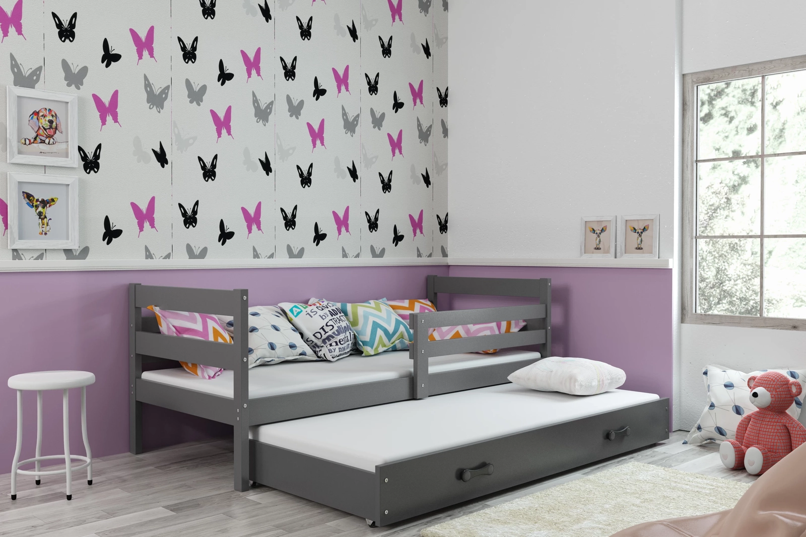 Culoarea grafit a cadrului este neutră. Completează mobilierul tradițional alb, gri sau crem. Este făcut pentru adolescenți. Se potrivește cu fiecare culoare de perete și cu fiecare soluție, ceea ce înseamnă o simbioză completă în cameră, chiar și după renovări ulterioare.