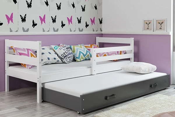 Pat extensibil pentru tineri ERYK 80X190 cu sertar, alb/grafit