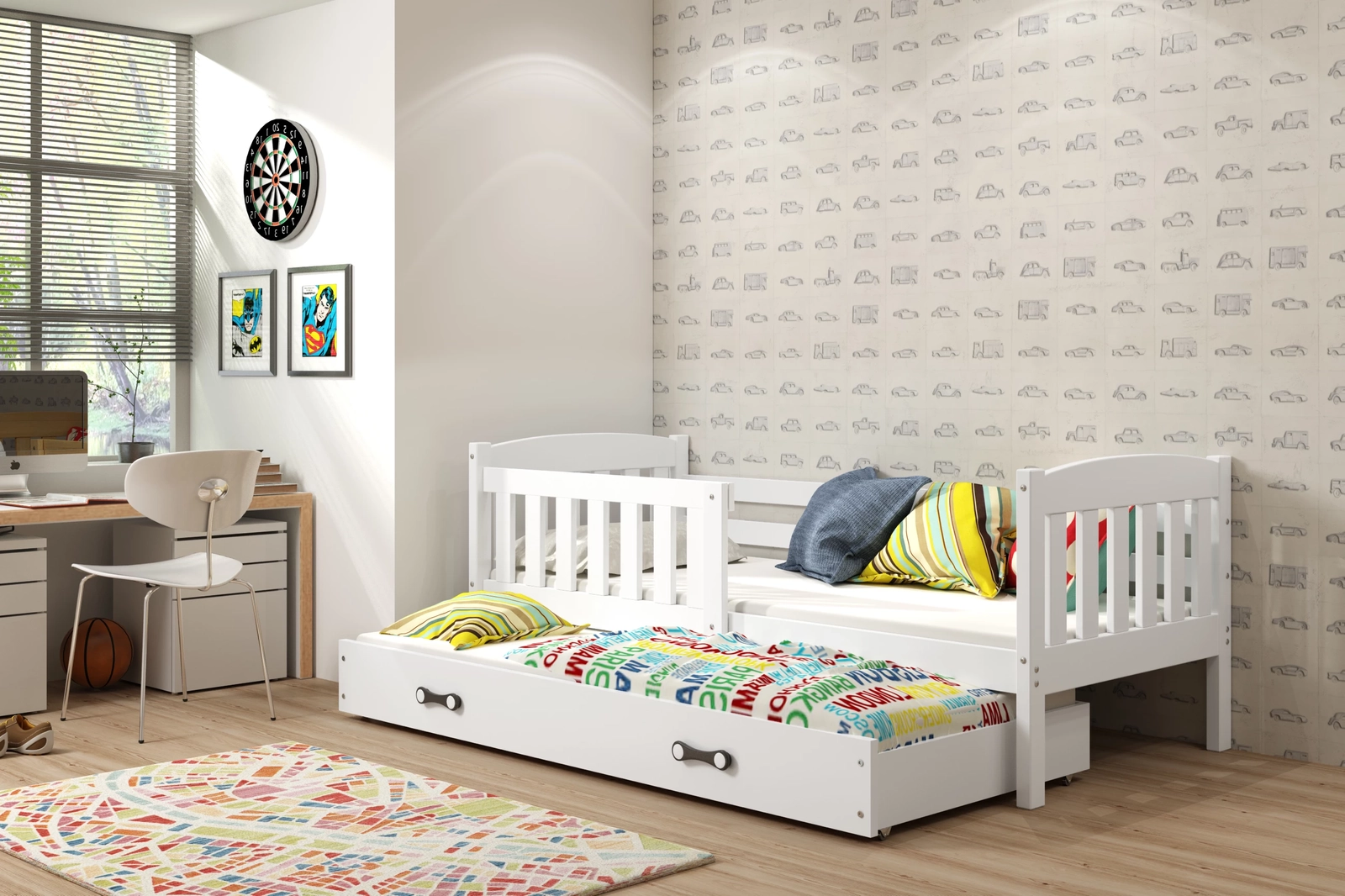 Pat extensibil pentru tineri KUBUŚ 90X200 cu saltea și sertar, alb