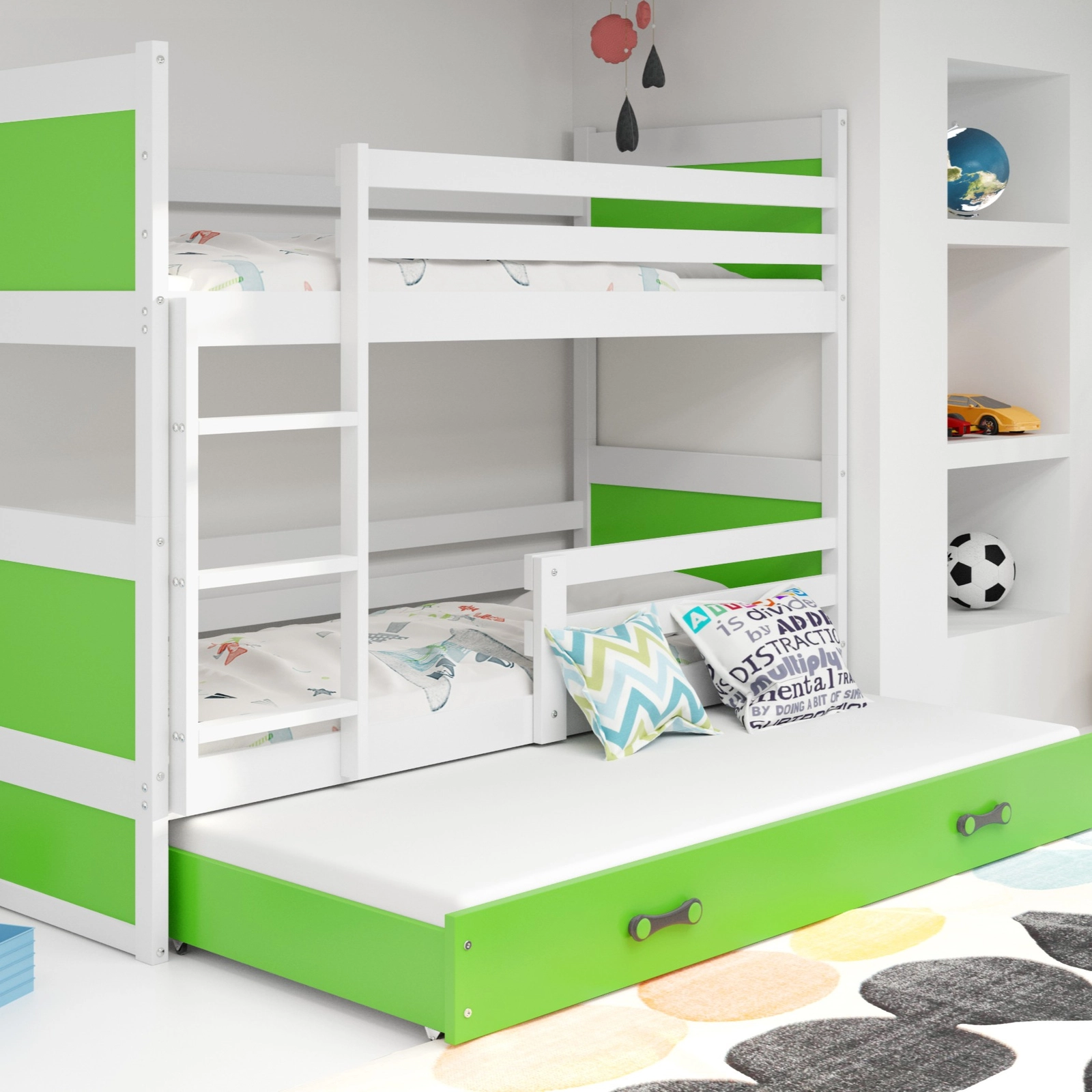 Pat junior pentru trei persoane RICO 90X200 cu sertar, alb/verde