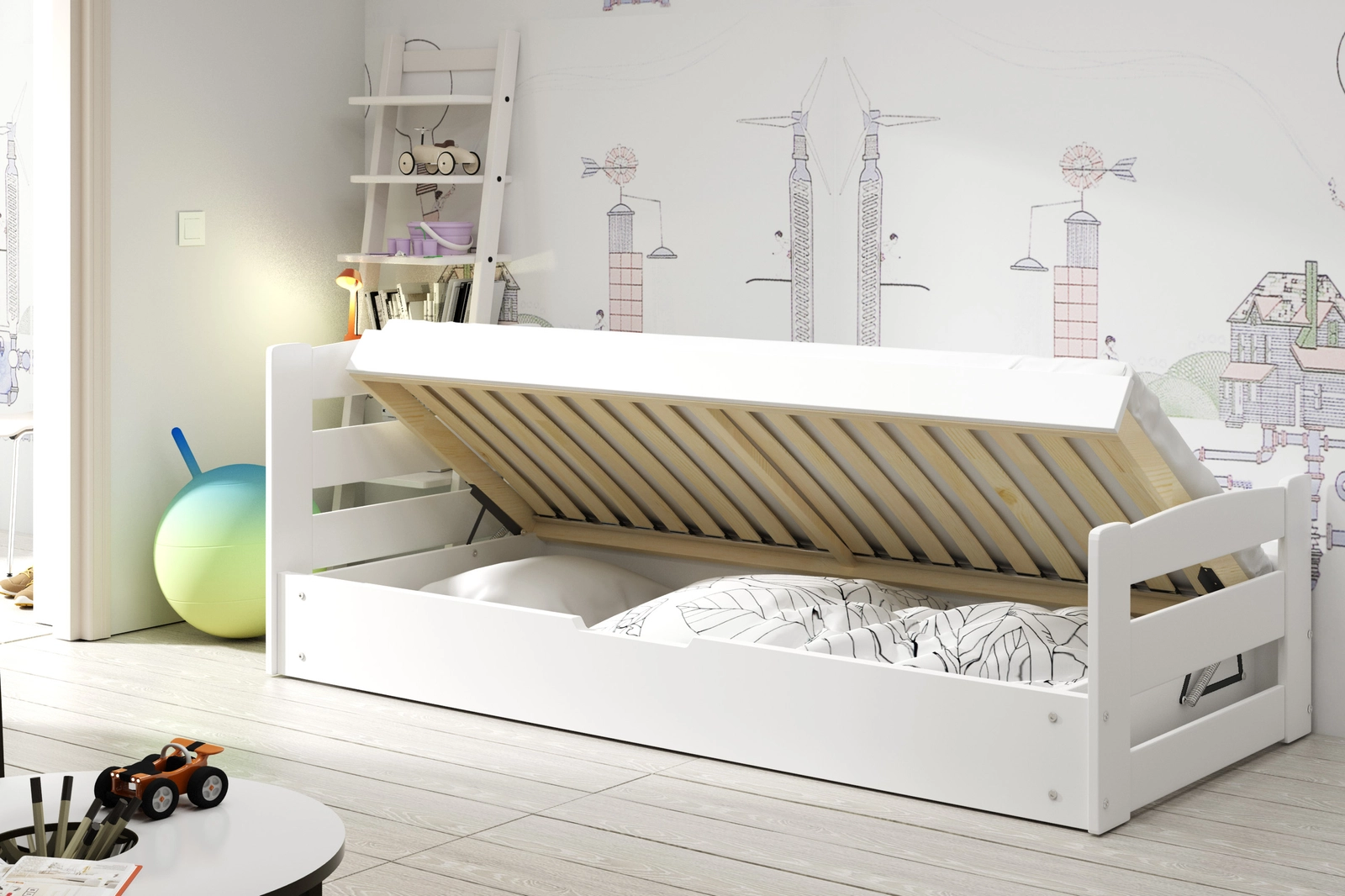 Pat pentru tineri ERNI 90X200 cu cutie de depozitare, alb