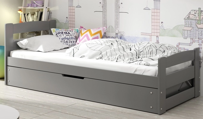 Erni este un pat single cu o suprafață confortabilă de dormit de 90x200 cm. Ideal pentru dormitorul unui copil în continuă creștere care are nevoie de mult spațiu pentru a dormi confortabil. Acest model este oferit cu o saltea inclusă, astfel încât atunci când vă decideți să-l cumpărați, obțineți o piesă de mobilier gata de utilizare.