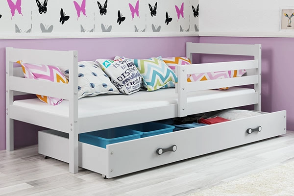 Pat pentru tineri ERYK 90X200 cu saltea și sertar, alb