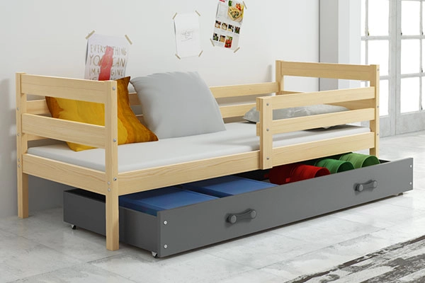 Pat pentru tineri ERYK 90X200 cu saltea și sertar, pin/grafit