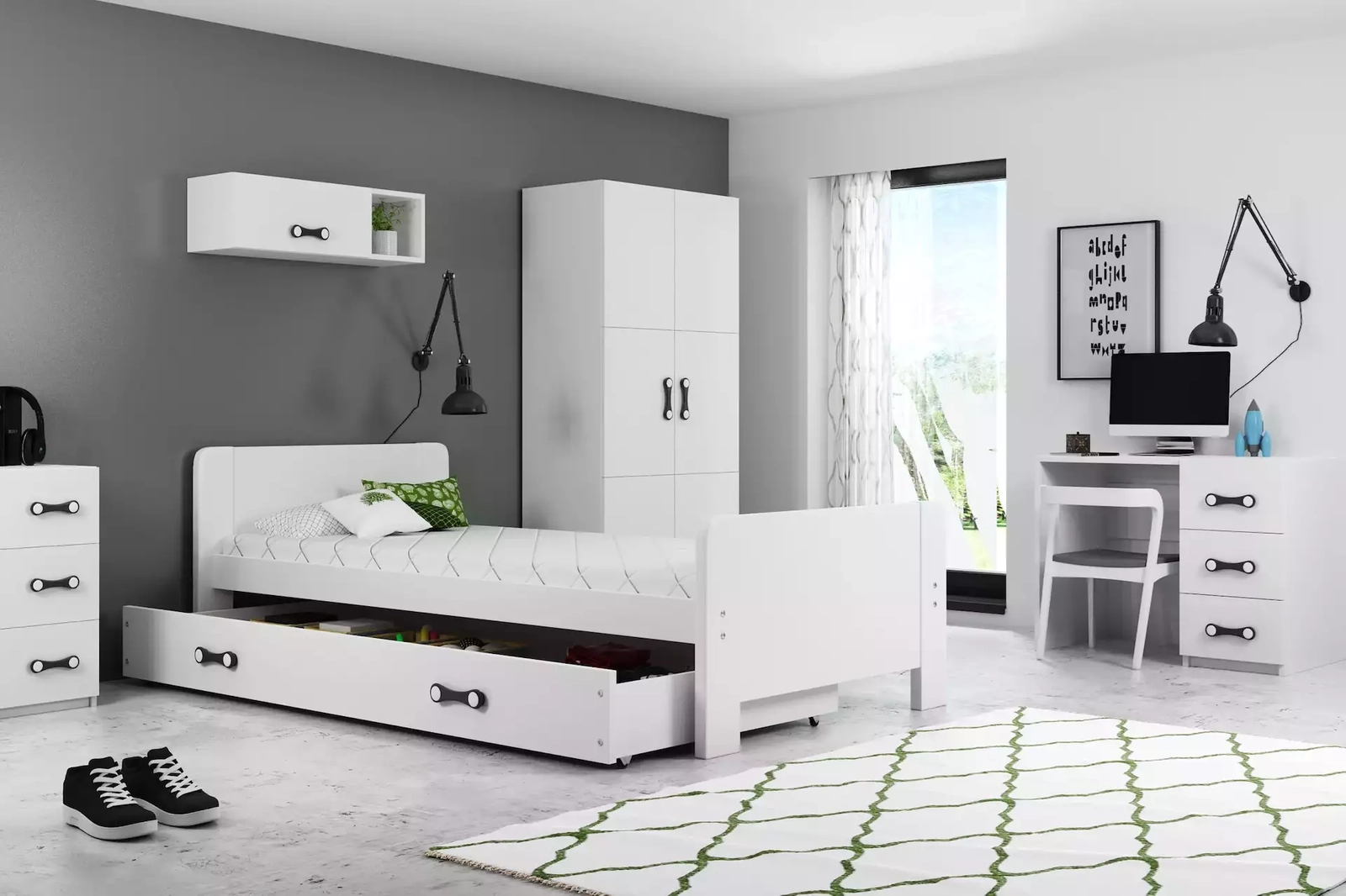 Patul de tineret Darek este o alegere excelentă pentru camera unui adolescent, combinând designul modern cu funcționalitatea. Designul său simplu și minimalist îl face să se potrivească cu ușurință într-o varietate de decoruri interioare.