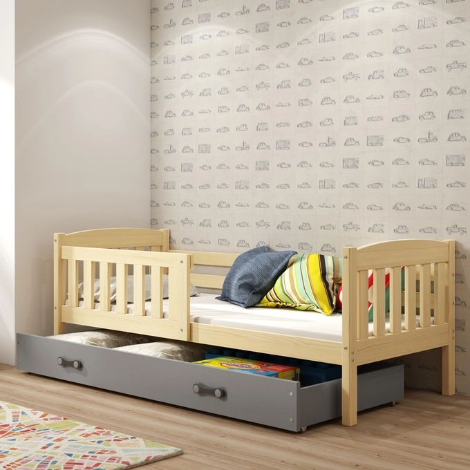 Pat single pentru copii KUBUŚ 80X160 cu sertar, pin/grafit