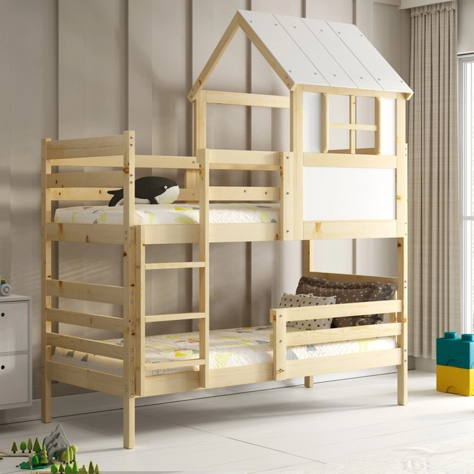 Unicitatea patului constă în designul său unic de tip cabană. Copiilor le va plăcea să urce la ultimul etaj, care devine propriul lor colțișor privat, perfect pentru dormit, învățat și jucat. Datorită spațiului suplimentar de dormit, patul dublu va funcționa bine și pentru frați sau pentru vizitarea prietenilor. Un pat suplimentar situat sub structura principală permite unui al doilea copil să doarmă confortabil fără a fi nevoie să reorganizați spațiul.