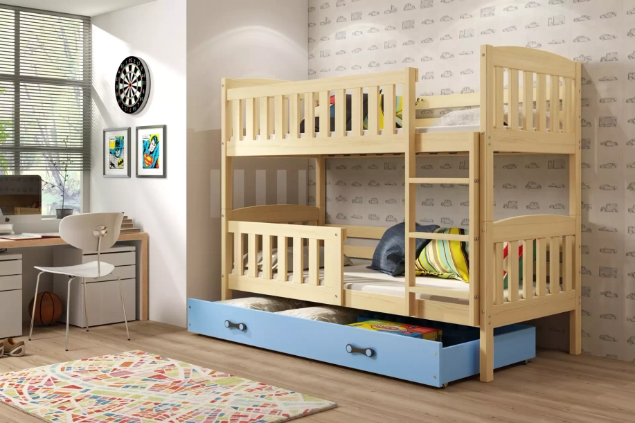 Pat supraetajat Jacquot 90x190 cu sertar, pin/albastru