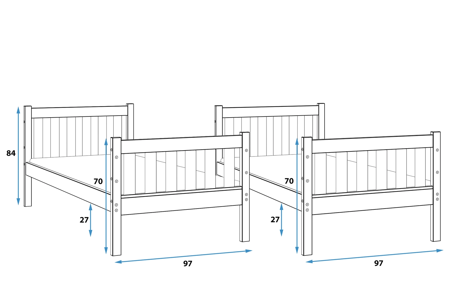 În funcție de nevoile dumneavoastră, puteți asambla patul Kacper ca un pat supraetajat sau îl puteți desfășura în două paturi single în orice moment.