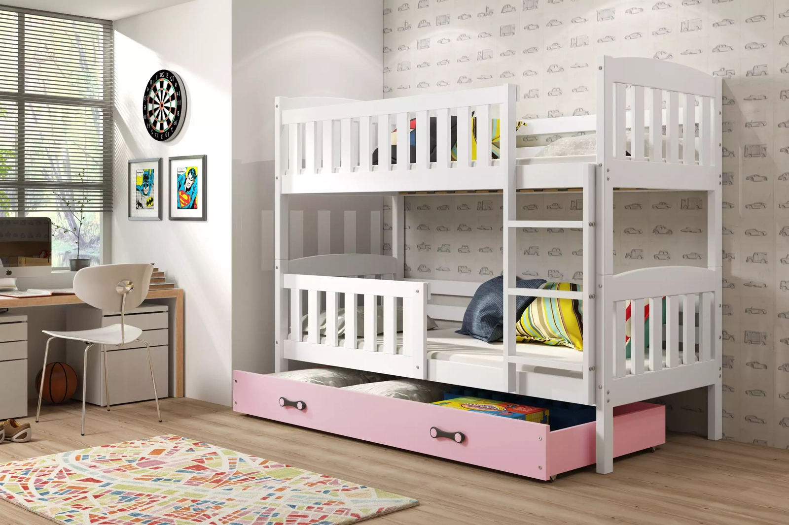 Pat supraetajat junior KUBUŚ 90X190 cu sertar, alb/roz