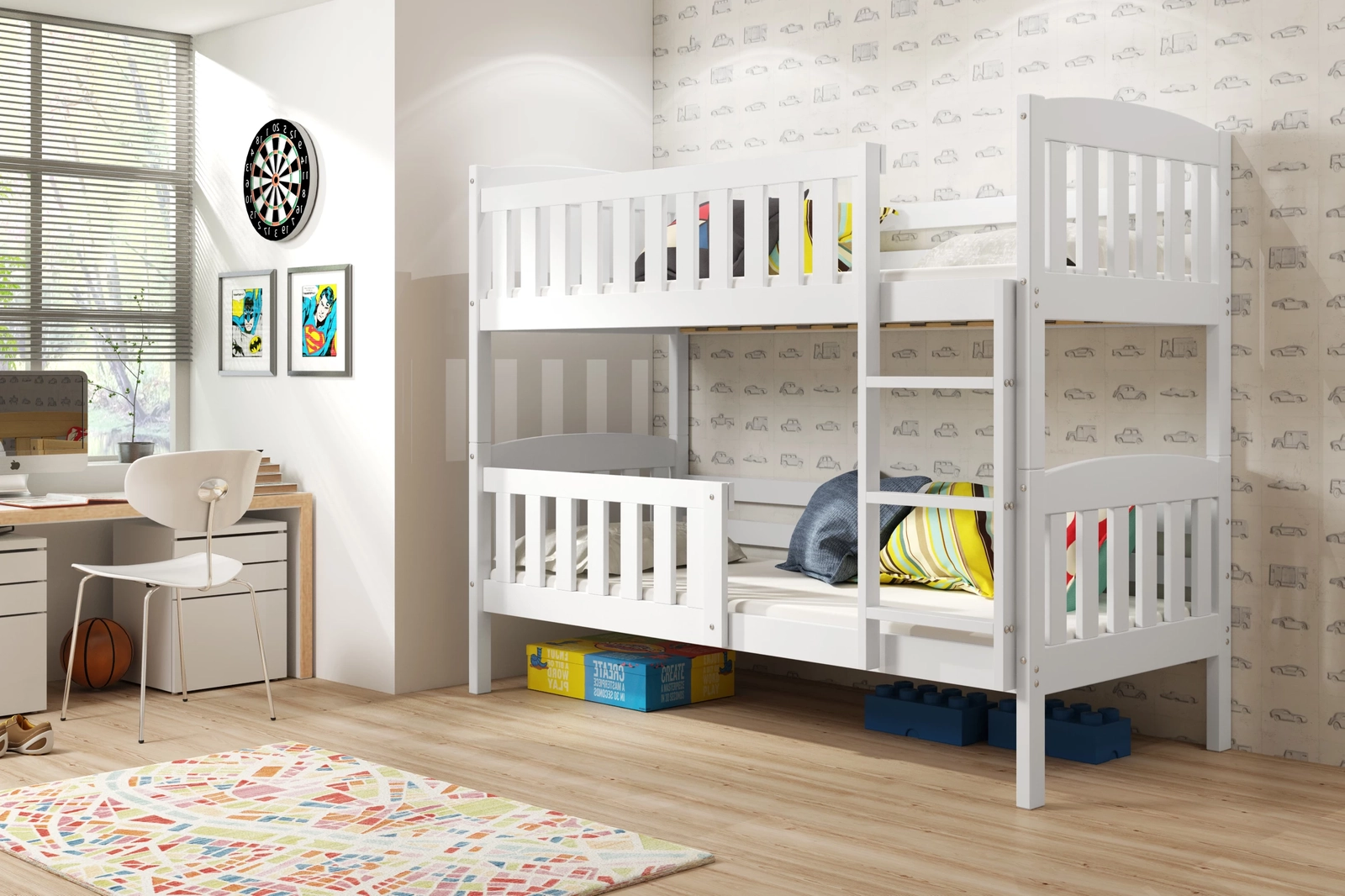 Pat supraetajat junior KUBUŚ 90X200 cu saltea, alb