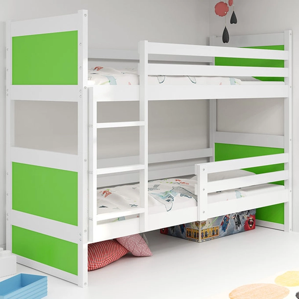 Pat supraetajat junior RICO 90X200 cu saltea, alb/verde