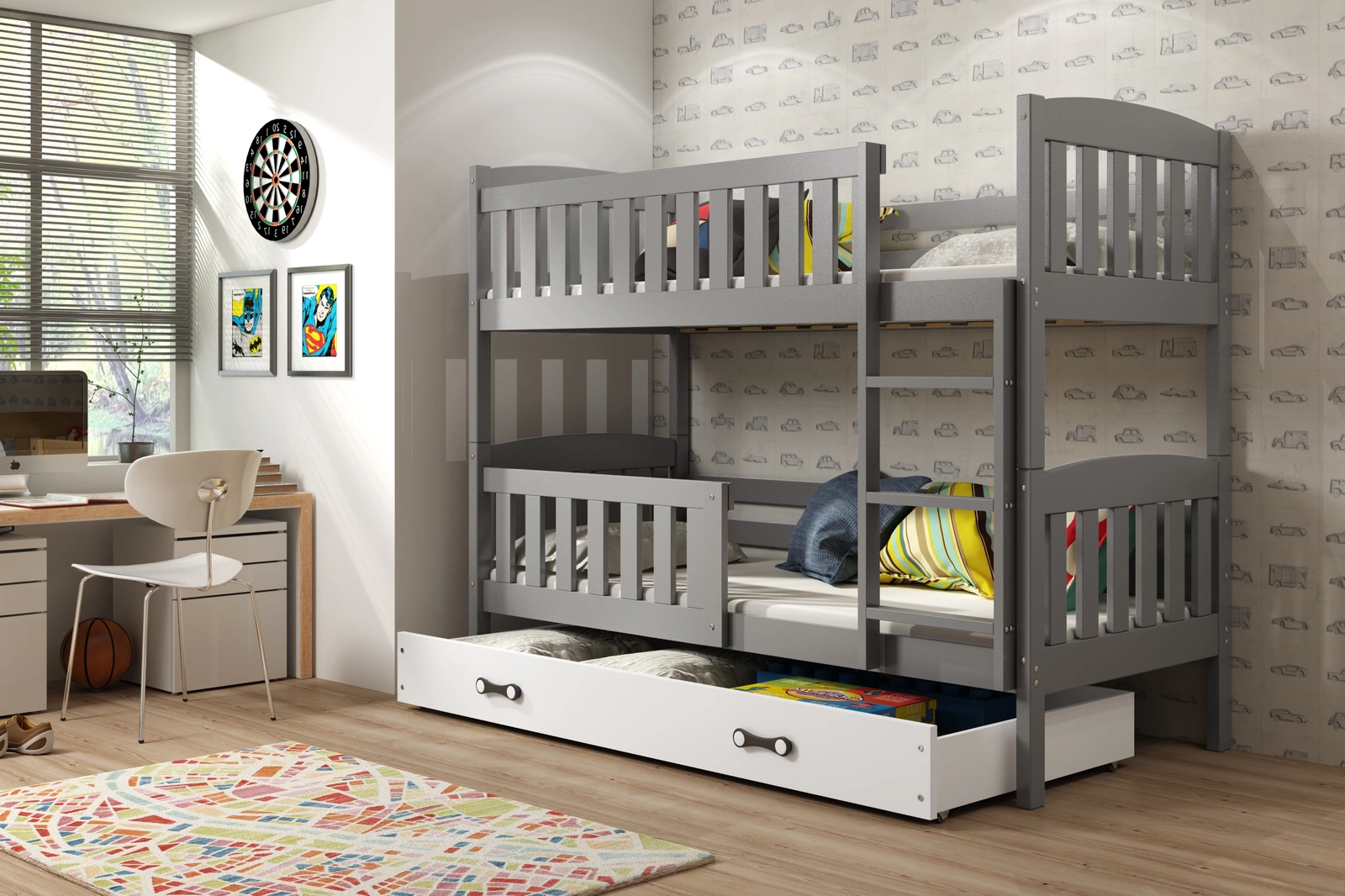 Pat supraetajat KUBUŚ 90X190 cu saltea și sertar, grafit/alb