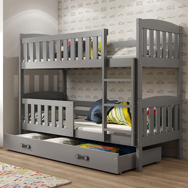 Pat supraetajat KUBUŚ 90X190 cu sertar, grafit