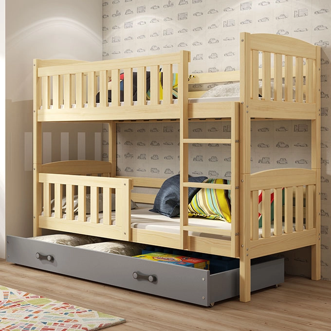 Pat supraetajat KUBUŚ 90X200 cu saltea și sertar, pin/grafit