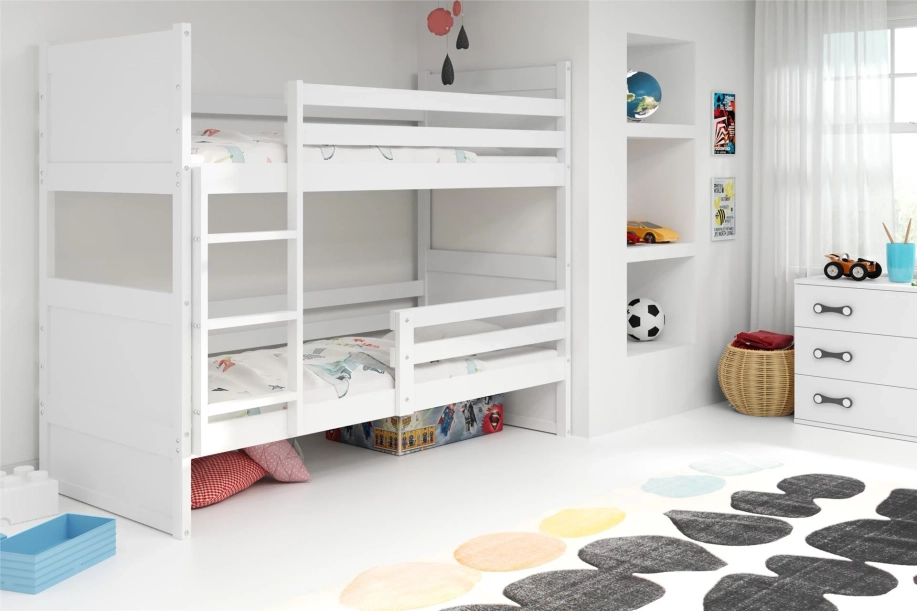 Știm că scopul dumneavoastră este să asigurați siguranța și confortul copiilor dumneavoastră. Vrei ca ei să aibă propriul lor colț de casă. De asemenea, suntem perfect conștienți de faptul că a crea un dormitor comun pentru doi copii, în special atunci când există o diferență mare de vârstă, nu este o treabă ușoară. Dacă aceasta este o provocare pentru dvs., am creat un pat supraetajat RICO special pentru dvs. Dimensiunea 90x190 îl face o investiție pentru anii următori. Perfect potrivit pentru dormitorul unui copil de 3 ani și al unui adolescent. Structura din lemn este stabilă, iar șuruburile de înaltă rezistență oferă o rezistență suplimentară. Barierele instalate pe paturile superioare și inferioare îi protejează, de asemenea, pe cei mici de căzături, chiar și atunci când noaptea sunt încă plini de energie ca o pasăre colibri. Albul este o soluție universală care vă oferă posibilități nelimitate de design. Sertarul alb din partea de jos poate fi folosit ca pat sau ca spațiu suplimentar de depozitare pentru jucării. O soluție practică pe care o veți iubi mai ales dacă vă place să păstrați lucrurile ordonate.