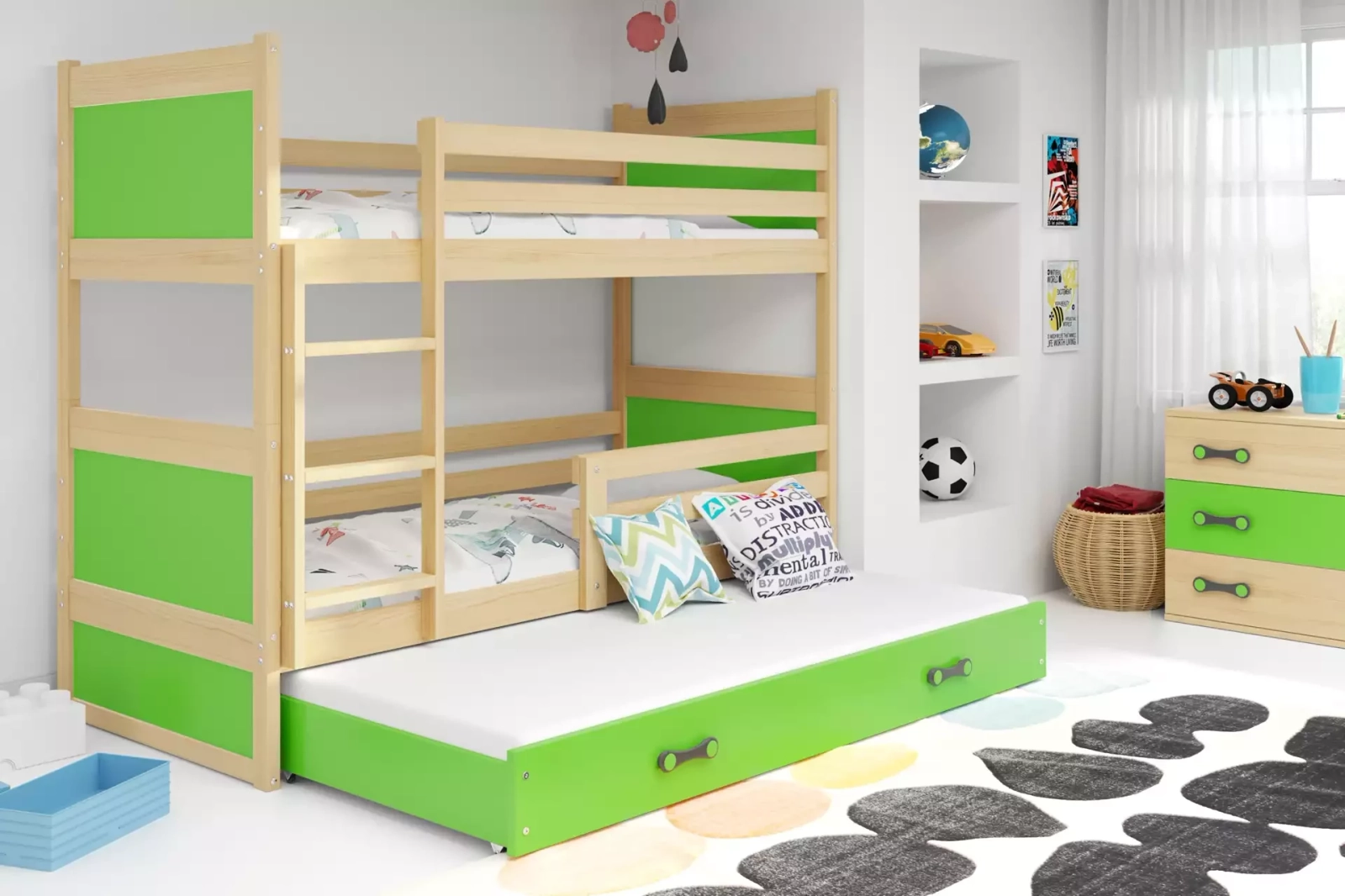 Pat supraetajat pentru adolescenți Rico cu 3 locuri 90x190 cu sertar, pin/verde
