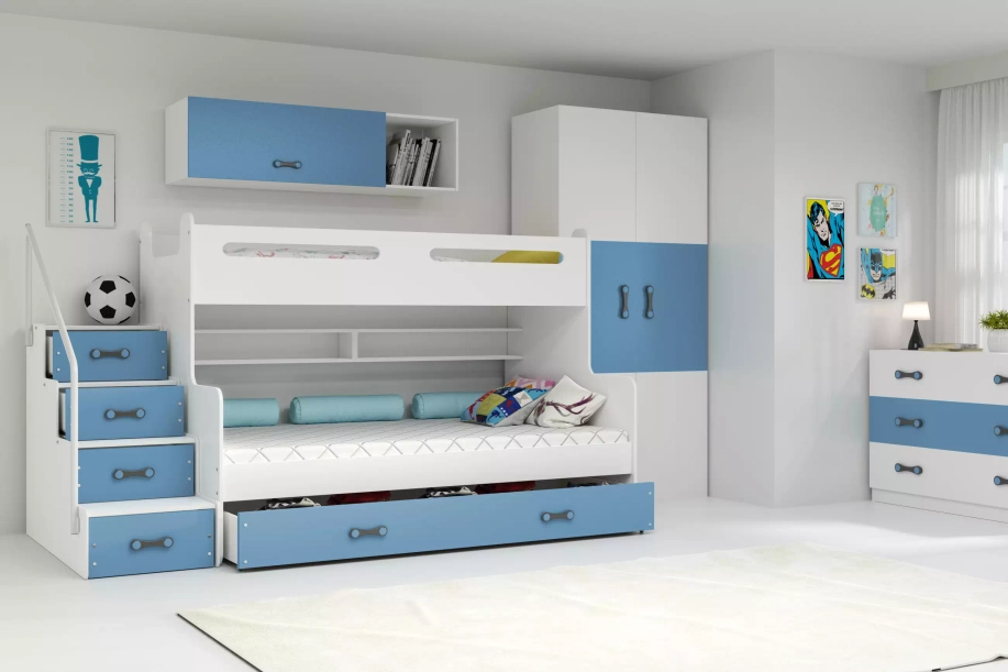 Pat supraetajat pentru tineret MAX 3 120X200 cu sertar, albastru