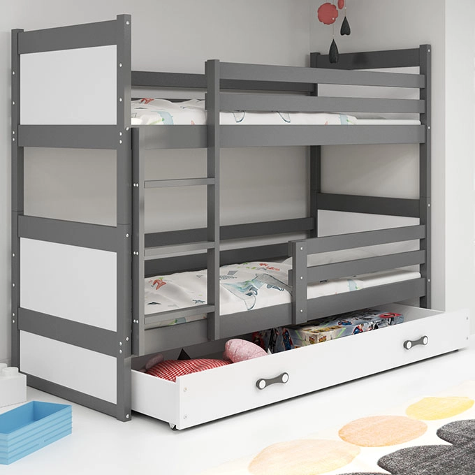 Pat supraetajat pentru tineret RICO 90X200 cu sertar, grafit/alb
