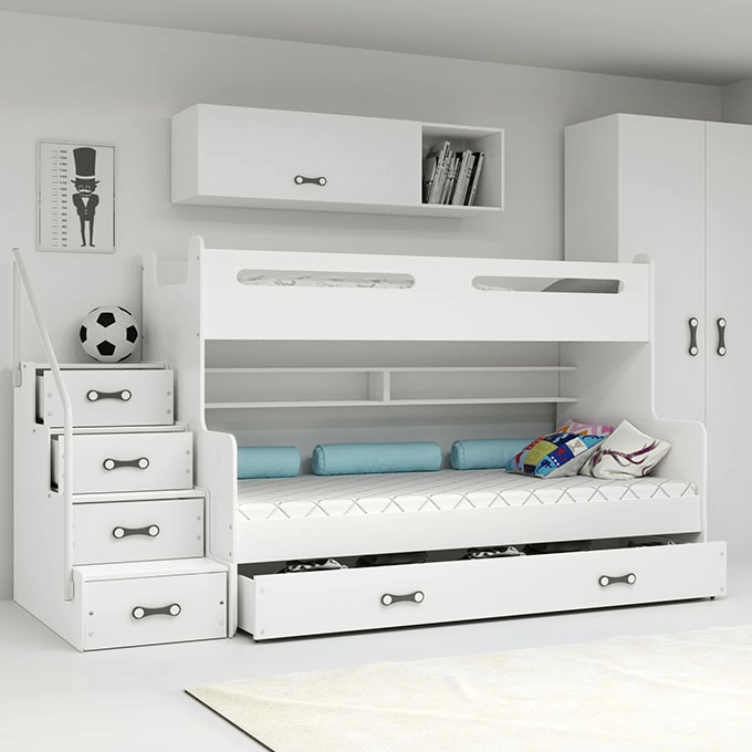 Pat supraetajat pentru tineri MAX 3 120X200 cu sertar, alb