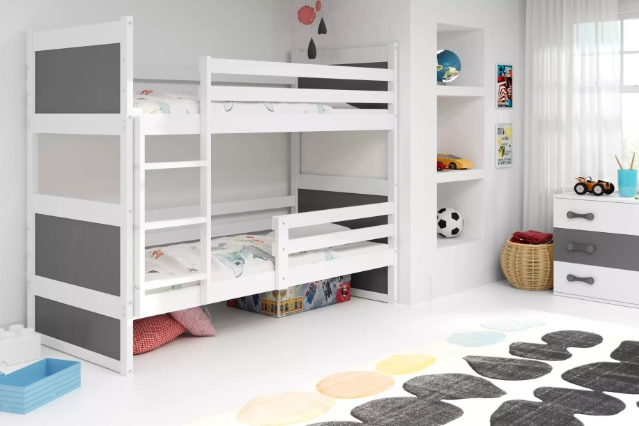 Pat supraetajat pentru tineri RICO 90X200, alb/grafit