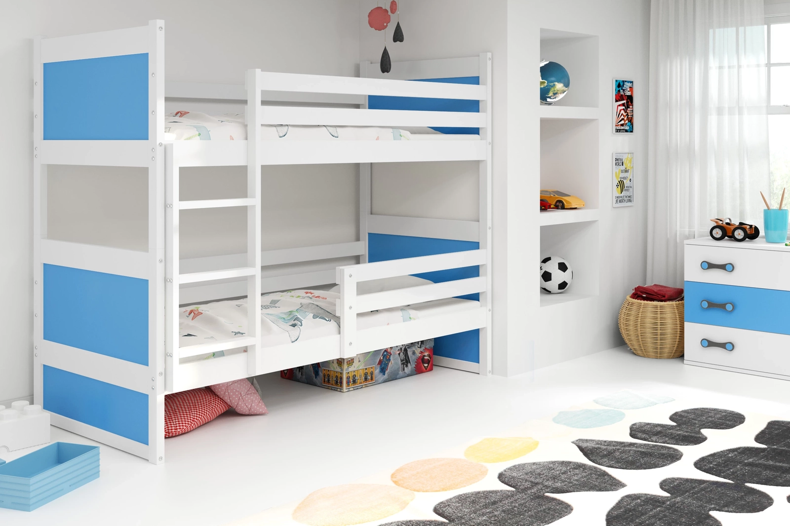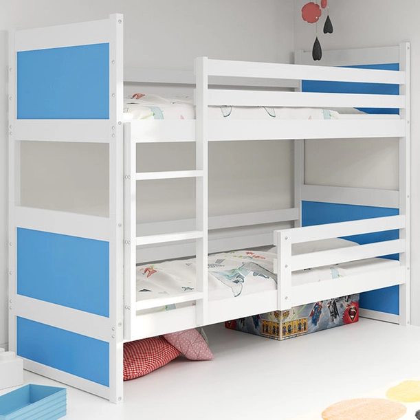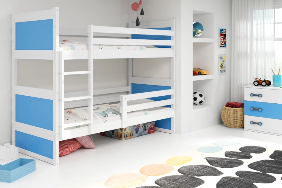 Pat supraetajat pentru tineri RICO 90X200 cu saltea, alb/albastru