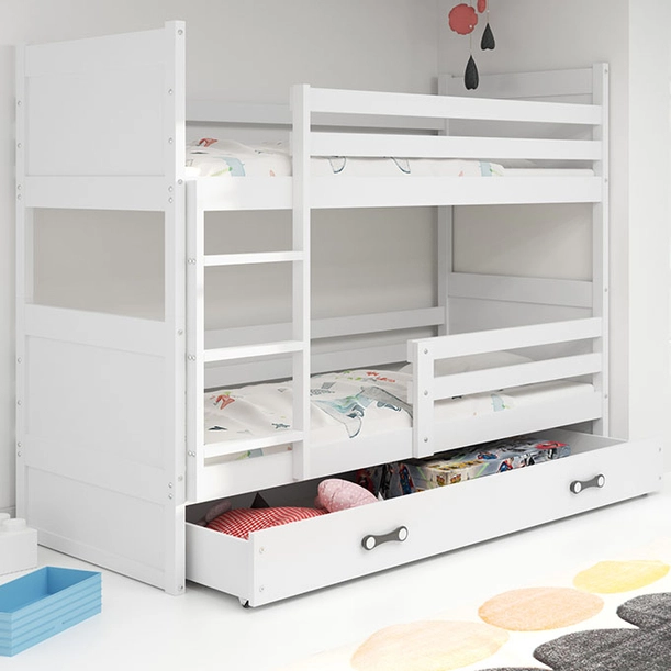 Pat supraetajat pentru tineri RICO 90X200 cu saltea și sertar, alb