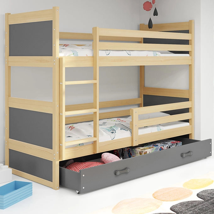 Pat supraetajat pentru tineri RICO 90X200 cu sertar, pin/grafit