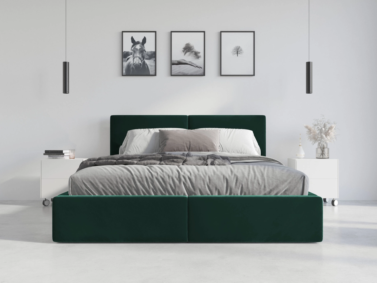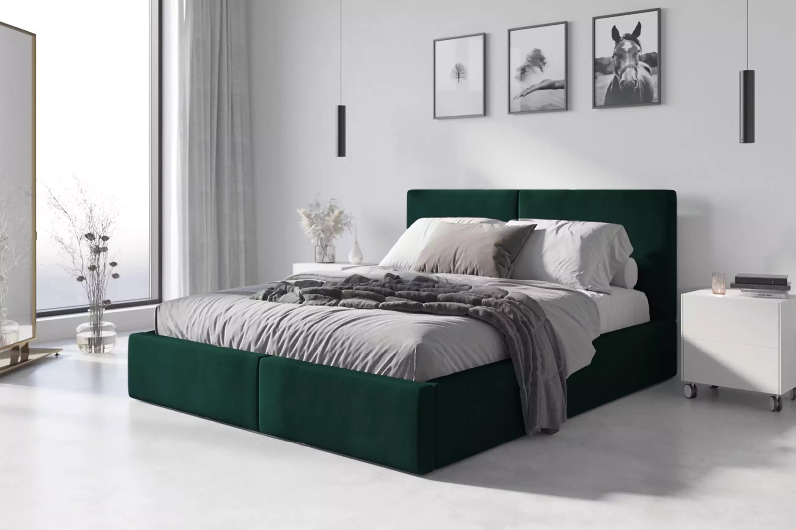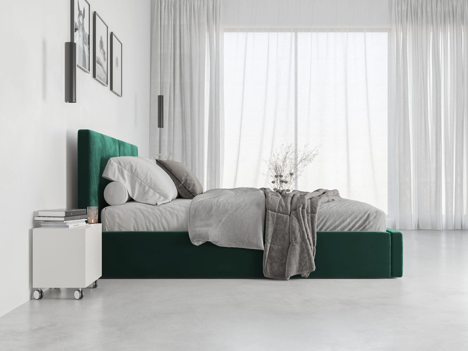 Pat tapițat pentru dormitor HILTON 120X200 cu cutie de depozitare, verde