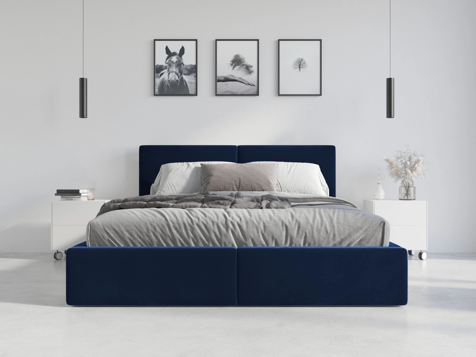 Pat tapițat pentru dormitor HILTON 140X200 cu cutie de depozitare, albastru