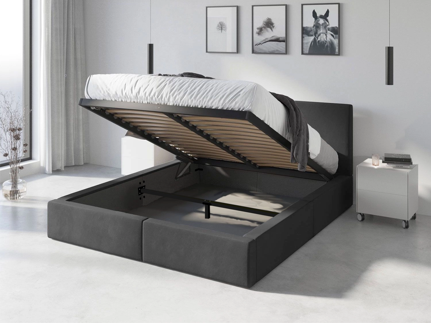 Pat tapițat pentru dormitor HILTON 140X200 cu cutie de depozitare, grafit