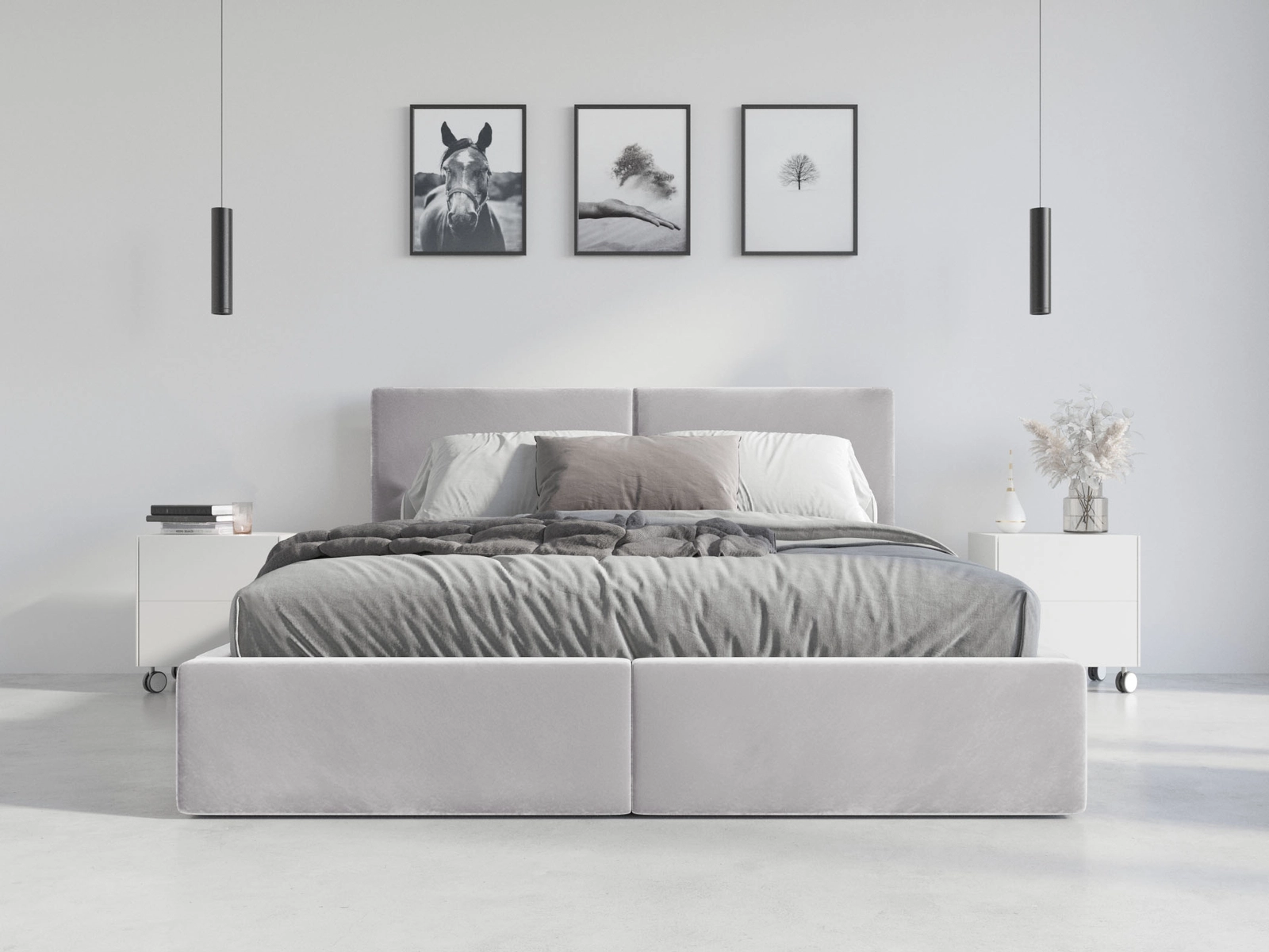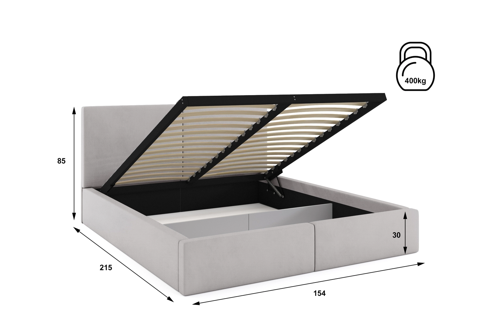 Pat tapițat pentru dormitor HILTON 140X200 cu cutie de depozitare, gri cenușă