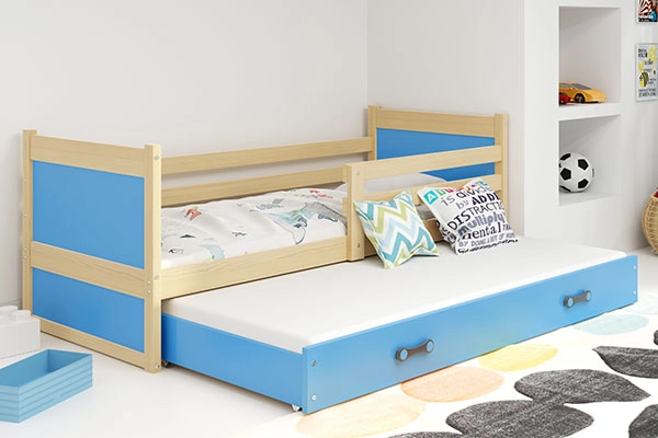 RICO 80X190 pat extensibil pentru tineri cu sertar, pin/albastru