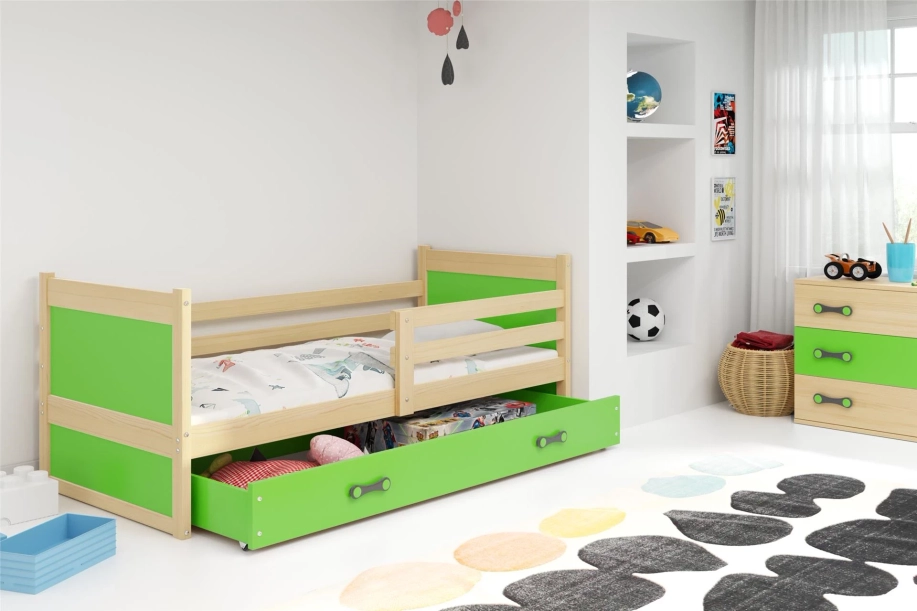 Rico pat single pentru adolescenți 90X190 cu saltea și sertar, pin/verde