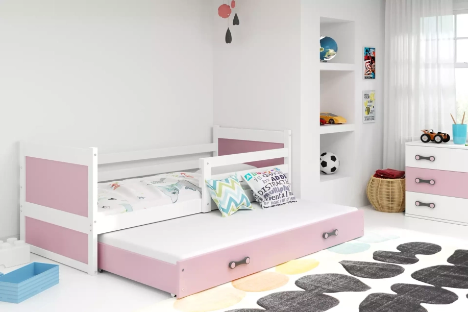 Rico teen pat trundle 90x190 cu sertar, alb / roz