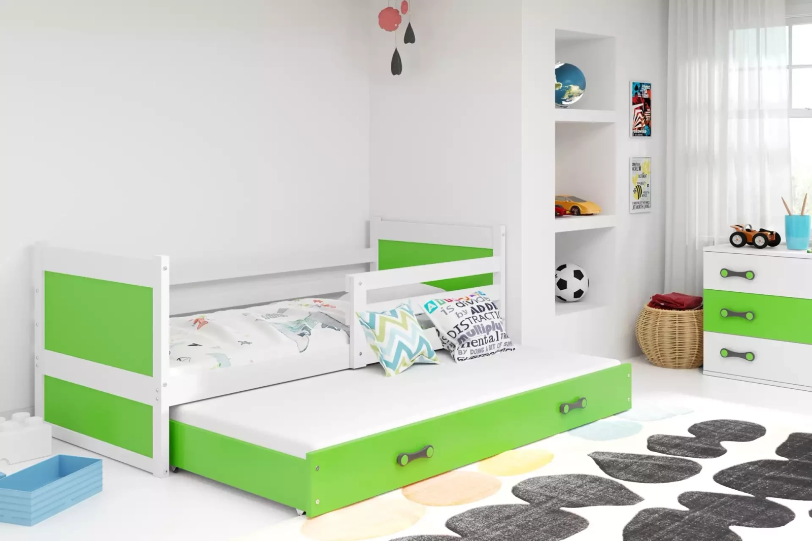 Rico teen pat trundle 90x190 cu sertar, alb/verde